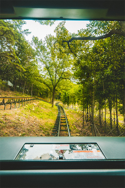 탑승은 정원 건물 2층에서 해요. 5분 간격으로 출발하지만, 한 번에 10명 정도만 타고 속도가 느려서 대기 시간이 2~3시간 걸릴 수 있어요. 평일 오후에도 2시간 대기라는 후기가 많아요. 가을 축제 기간엔 더 붐비니 미리 각오하세요!