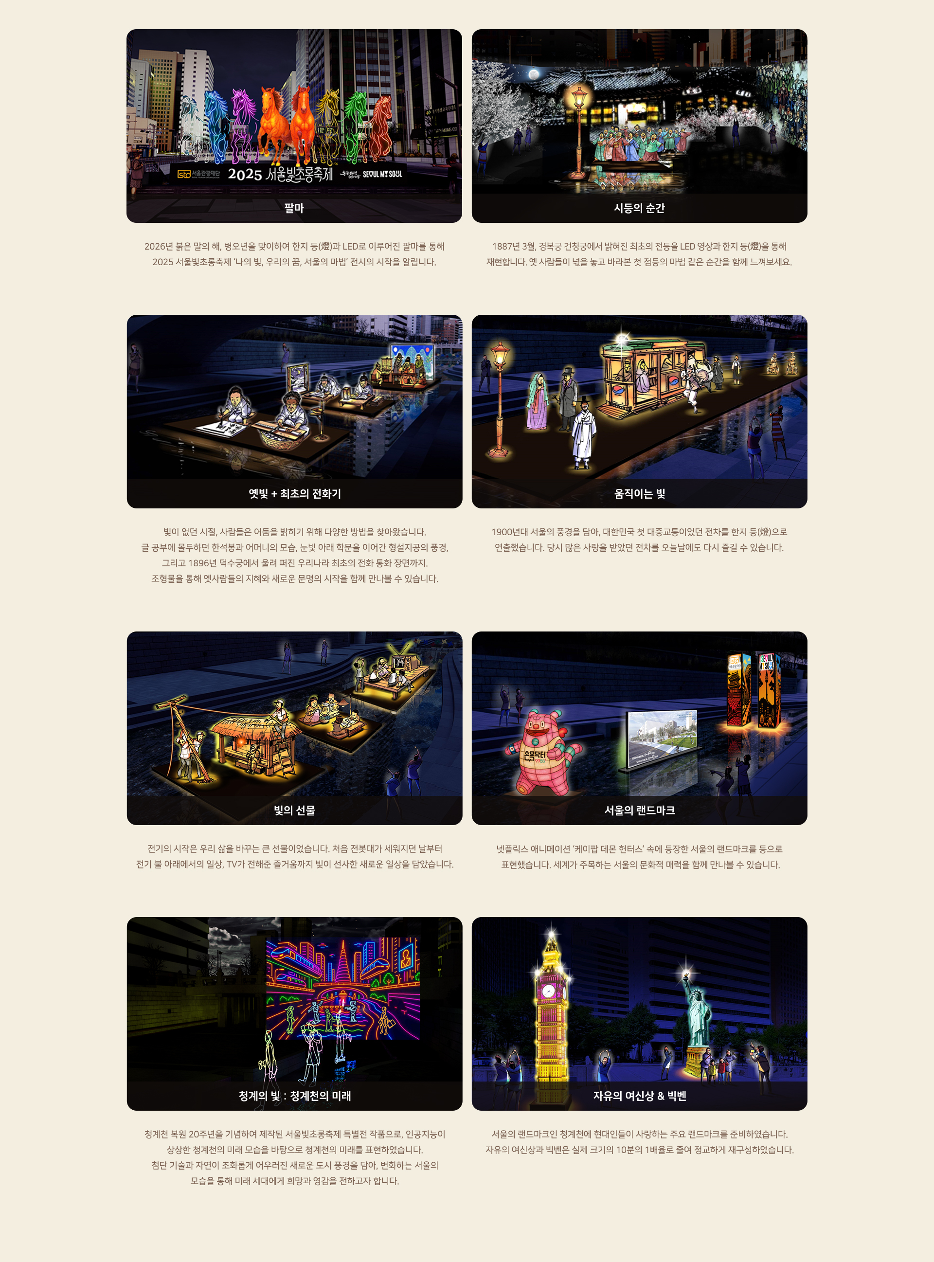 2025 서울빛초롱축제는 서울의 밤을 '마법'으로 바꾸는 축제입니다. 17년의 역사처럼, 올해도 300만 명 이상의 방문객을 기대하며 더 업그레이드됐습니다. 청계천의 활기와 우이천의 여유, 빛 속에서 꿈꾸는 시간 – 혼자서도, 사랑하는 이와도 소중한 순간이 될 거예요.